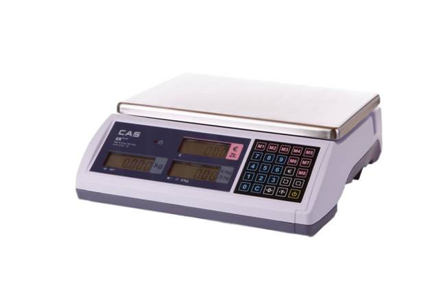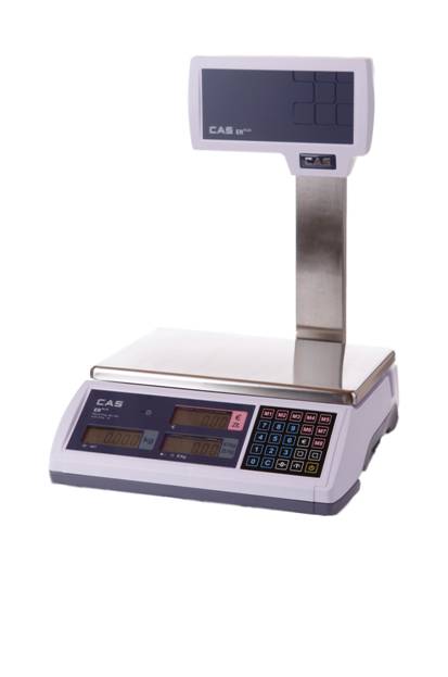 Wagi kalkulacyjne CAS ER PLUS to następcy znanego modelu wagi CAS ER 15C. Wagi te wyposażone są w podświetlane wyświetlacze LCD, port RS-232 oraz wbudowany akumulator zapewniający pracę do 200h bez zasilania. Urządzenie dedykowane do pracy w tradycyjnych punktach sprzedaży, na bazarach oraz przy sprzedaży obwoźnej. Dzięki automatycznej zmianie działki, waga zapewnia wysoką dokładność pomiarów, szczególnie dla produktów o małej masie.